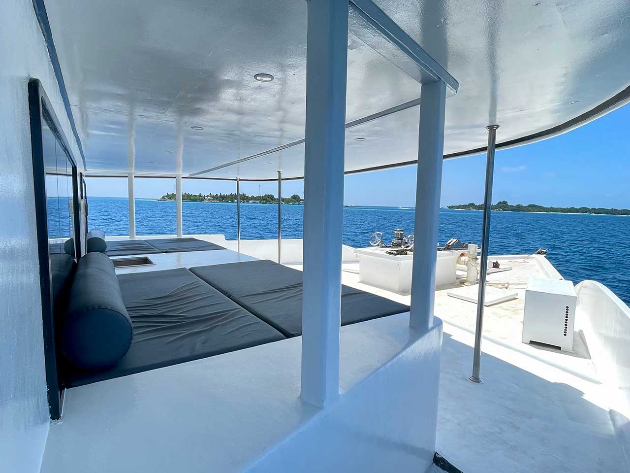Le magnifique bateau Ocean One, de 37m de long et 12m de large, sera votre hôtel flottant durant votre croisière. Ce bateau très spacieux compte 15 cabines, réparties sur 3 ponts. Entièrement climatisé et offrant tout le confort digne des plus prestigieux bateaux de croisière-plongée, ce bateau vous séduira par ses vastes espaces intérieurs et extérieurs et ses aménagements idéaux pour sous relaxer entre les plongées ou au coucher du soleil.